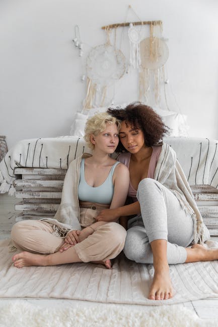 女同性恋多样化的夫妇在卧室休息时拥抱 · 免费素材图片