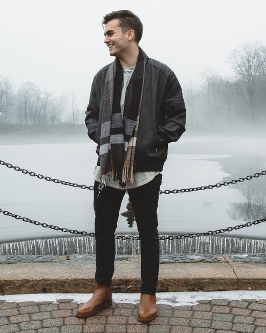 黑色和灰色围巾微笑的男人 · 免费素材图片