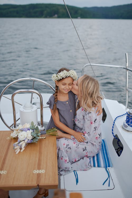 在暑假期间父亲拥抱女儿在游艇上 · 免费素材图片