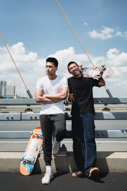 栅栏附近的滑板最好的亚洲朋友 · 免费素材图片