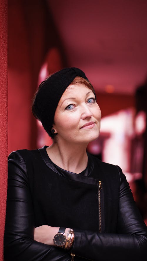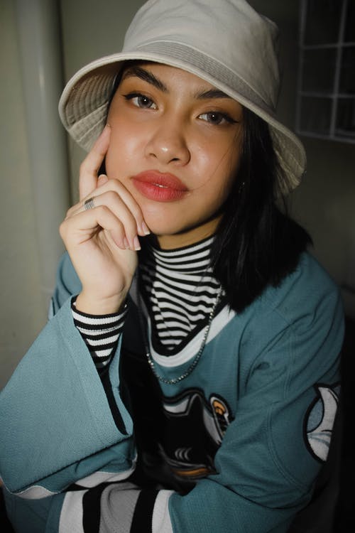 女人穿着黑色的长袖衬衫和黑色的帽子 · 免费素材图片