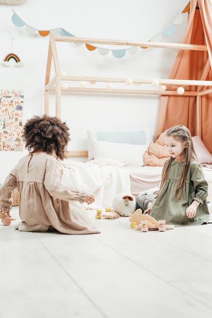 坐在地板上玩的女孩的照片 · 免费素材图片