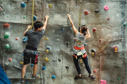 无所畏惧的年轻女子,攀登岩石粗糙的墙壁 · 免费素材图片