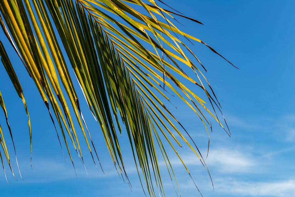 蓝蓝的天空下的绿色棕榈叶 · 免费素材图片