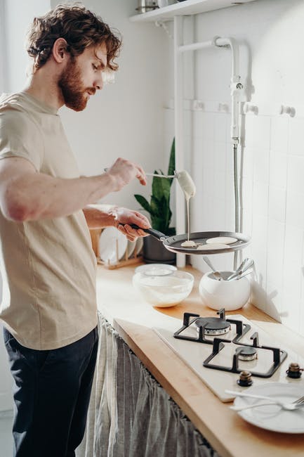 男子手持煎锅和倒牛奶 · 免费素材图片