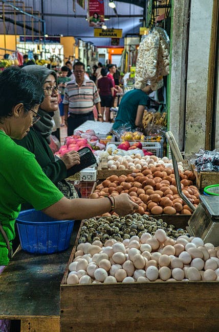 站在蔬菜摊位前的人的照片 · 免费素材图片