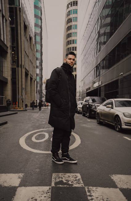 穿黑夹克的男子站在行人专用道 · 免费素材图片