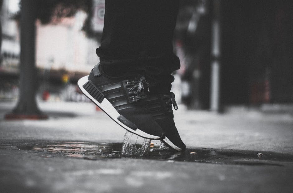 穿着阿迪达斯nmd跳水坑的人的灰度照片 · 免费素材图片