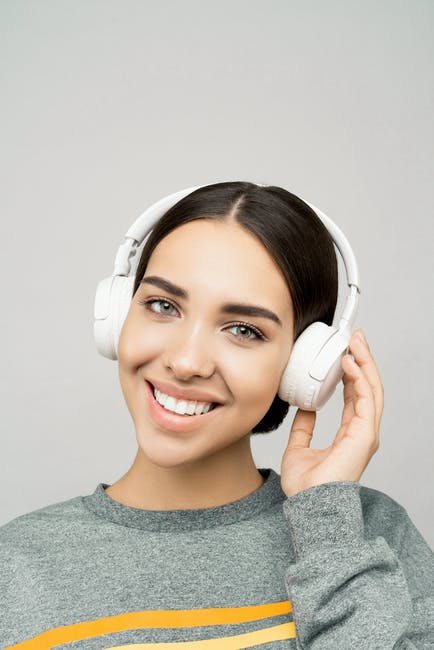 灰色船员的脖子衬衫,戴着白色耳机的女人 · 免费素材图片
