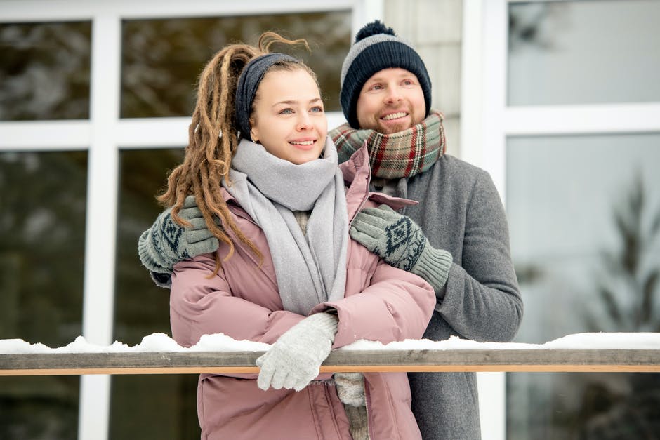 男人穿着一件灰色外套和粉红色外套的女人 · 免费素材图片