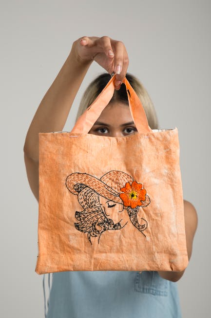 女人抱着橙色的袋子 · 免费素材图片