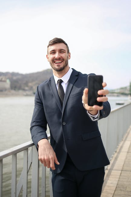 拿着黑色智能手机的黑色西装外套的男人 · 免费素材图片