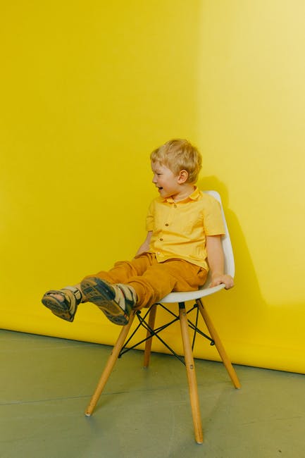 坐在椅子上墙附近的黄色polo衫的男孩 · 免费素材图片