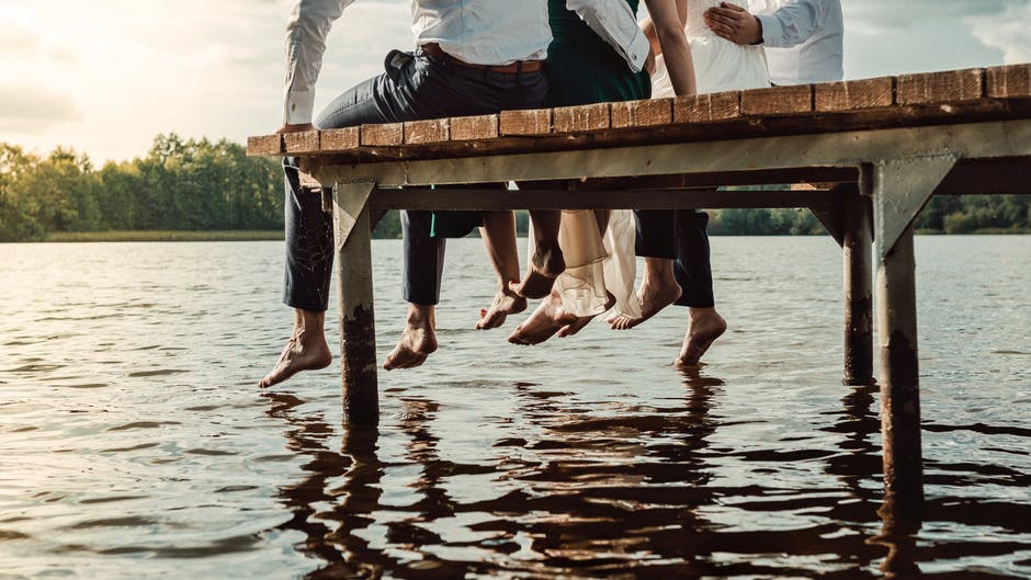 人们坐在棕色的木码头 · 免费素材图片