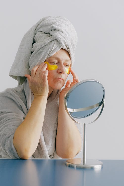 拿着圆镜的灰色浴袍的人 · 免费素材图片