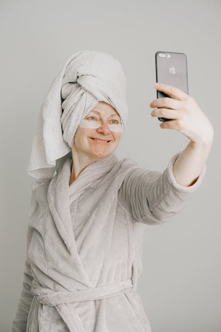 拿着i Phone的灰色浴袍的女人 · 免费素材图片