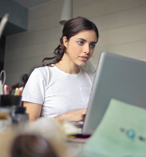 在使用笔记本电脑时在她头上的毛巾的女人 · 免费素材图片