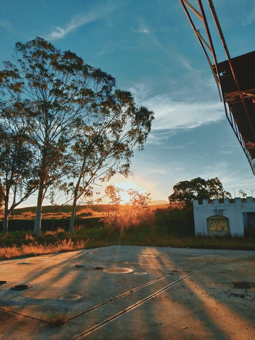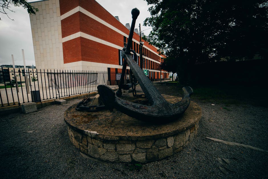 绿叶树附近的黑色锚雕像 · 免费素材图片