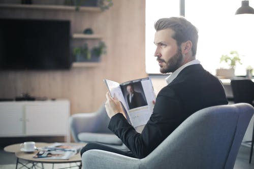 坐在棕色的沙发上的黑色西装的男人 · 免费素材图片