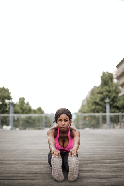 女人坐在木地板上伸展主动穿的照片 · 免费素材图片
