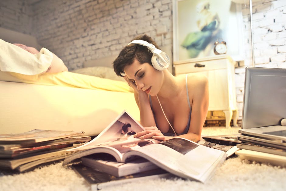 读一本书时听音乐的女人 · 免费素材图片
