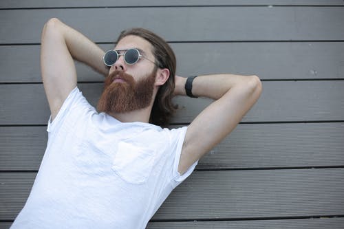 拿着黑色和灰色相机的银色镜框太阳镜的男人 · 免费素材图片