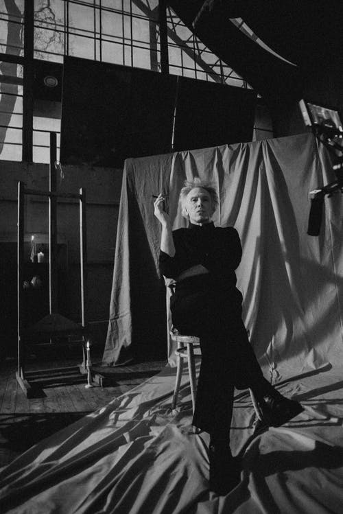 男子坐在木椅上的灰度照片 · 免费素材图片