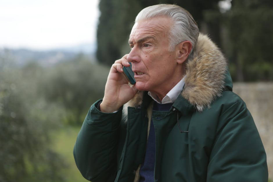 拿着电话的绿色夹克的人 · 免费素材图片
