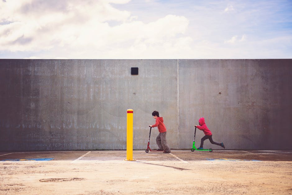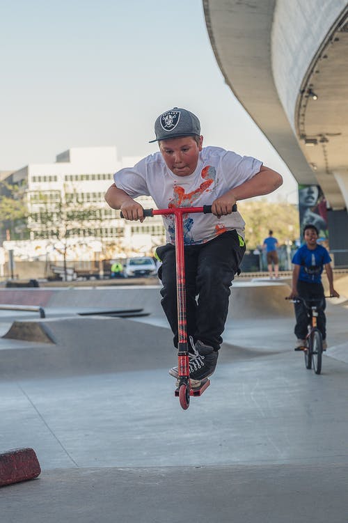两个男孩玩踏板车 · 免费素材图片