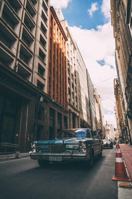 蓝绿色车在城市建筑物旁边的道路上 · 免费素材图片