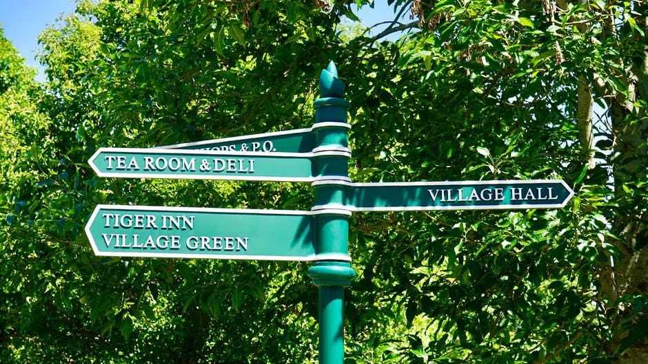 树附近的绿色道路标志 · 免费素材图片