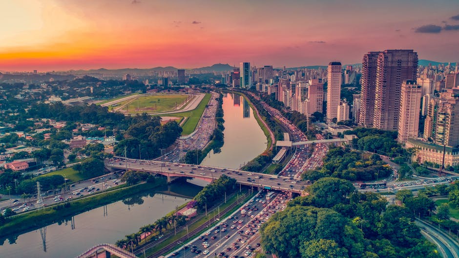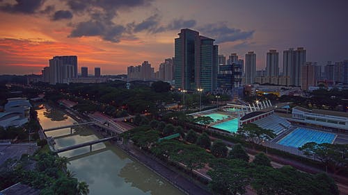 日落期间城市建筑的鸟瞰图 · 免费素材图片