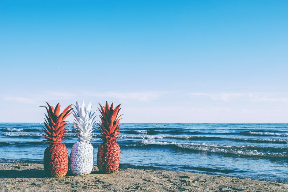 白色和两个红涂的菠萝附近在海边 · 免费素材图片