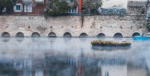 房屋附近水体的灰度照片 · 免费素材图片