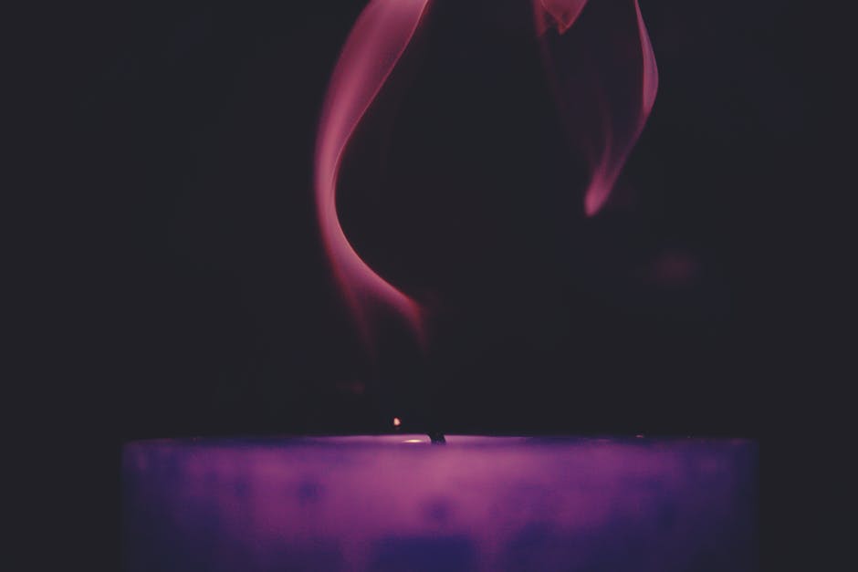 黑色背景点燃的紫色蜡烛 · 免费素材图片