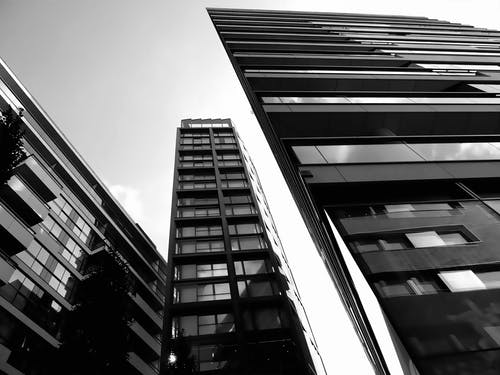 高层混凝土建筑的灰度照片 · 免费素材图片
