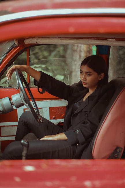 黑色衣服坐在红色汽车座椅上的女人 · 免费素材图片