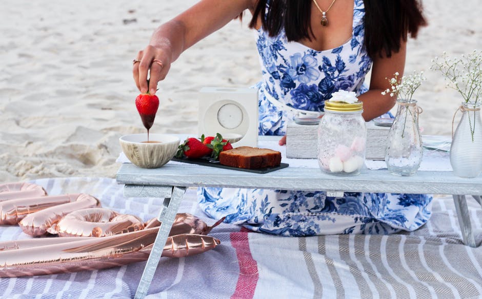 女人穿着蓝色和白色的花卉无袖连衣裙 · 免费素材图片