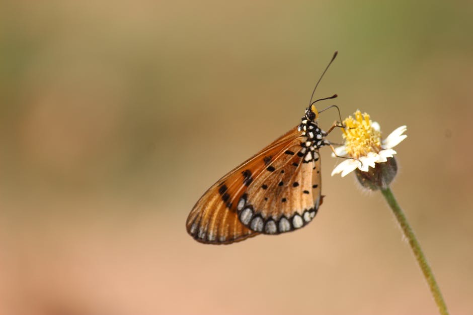 白色花瓣上的棕色和黑色蝴蝶 · 免费素材图片