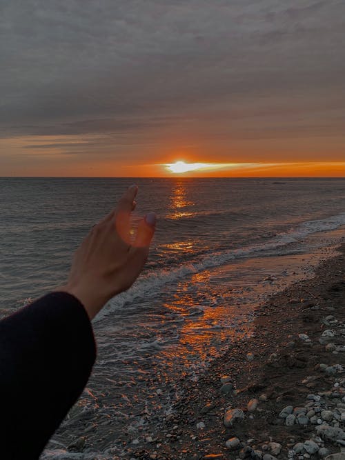 黄金时段海滩全景摄影 · 免费素材图片