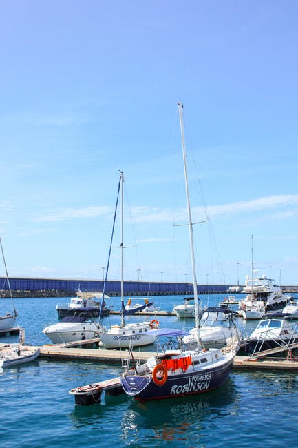 码头旁的白色和黑色鲁滨逊游艇 · 免费素材图片