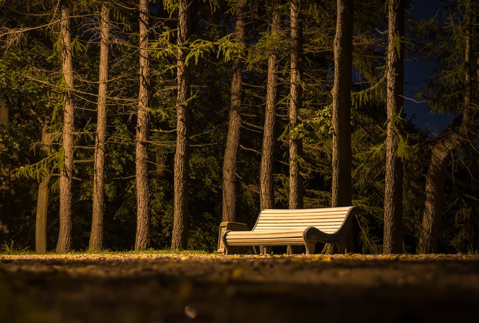 棕色木制板条凳附近棕色树干 · 免费素材图片