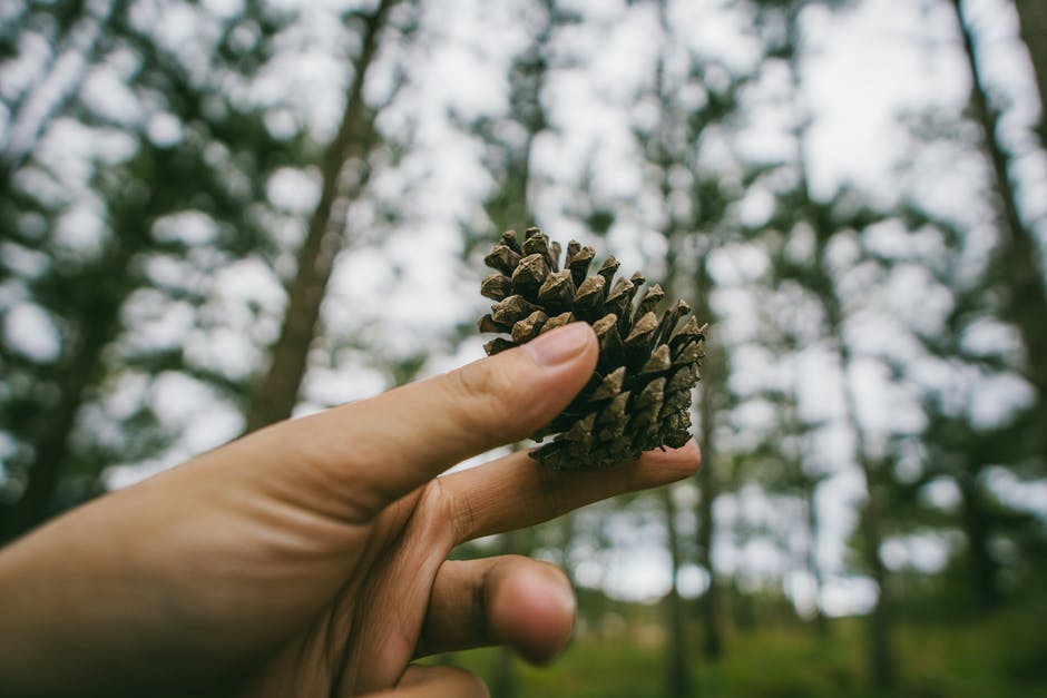 手拿着松果的摄影 · 免费素材图片