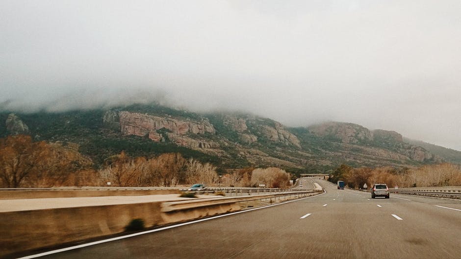 白天在靠近山谷和山脉的4车道道路上的汽车 · 免费素材图片