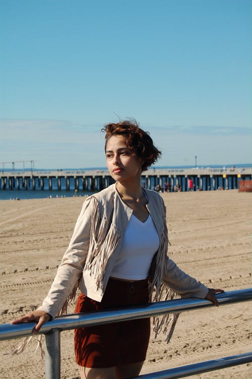 女人穿着蓝色的汤匙脖子四分之一袖衬衫摆姿势 · 免费素材图片