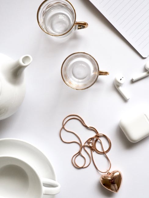 桌上的两个玻璃杯子旁边的金色心形吊坠项链 · 免费素材图片