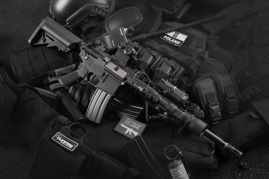 黑色m4a1在杂志上的灰度照片 · 免费素材图片
