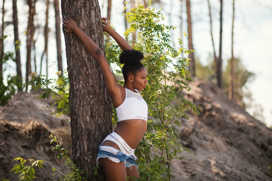 女人穿着白色运动胸罩拿着树 · 免费素材图片