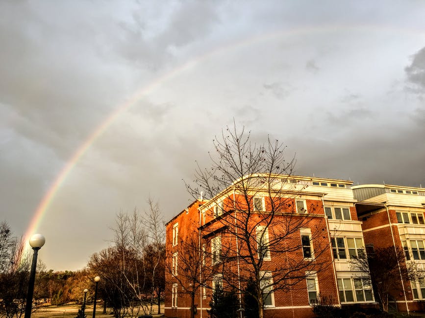 彩虹出现在棕色和白色的混凝土建筑上方 · 免费素材图片