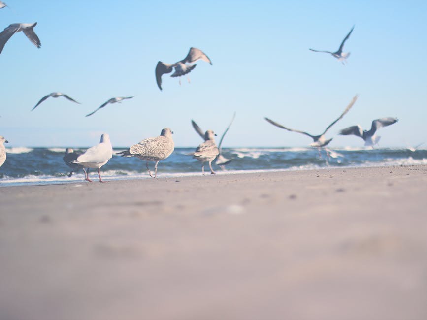 白天在海洋附近的海岸上的海鸥群 · 免费素材图片